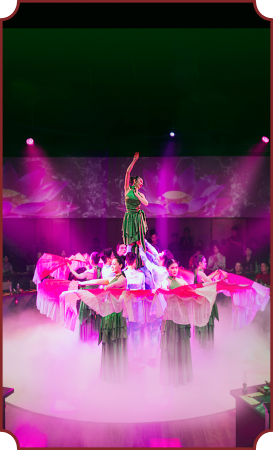Giá vé đã bao gồm: 100 phút trải nghiệm với 9 tiết mục nghệ thuật & thực đơn 8 món được phục vụ theo mạch trình diễn.