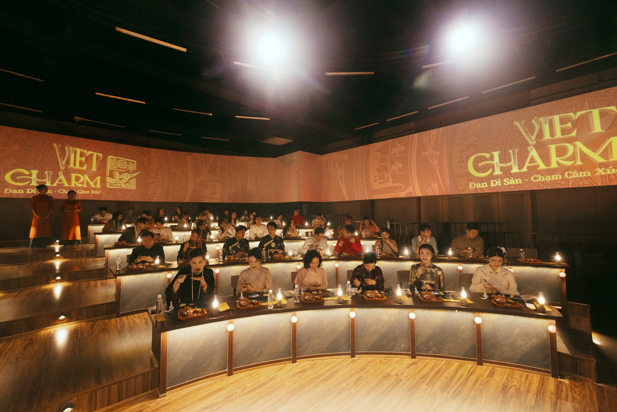 VietCharm định vị mình như một trải nghiệm văn hóa – ẩm thực tổng hòa, nơi kiến trúc di sản, nghệ thuật trình diễn dân gian và fine dining Việt cùng tồn tại trong một không gian sang trọng nhưng gần gũi. Tại đây, khán giả không chỉ đắm mình trong hát bội, múa dân gian và những màn trình diễn văn hóa ba miền, mà còn được thưởng thức tinh hoa ẩm thực Việt qua thực đơn được VietCharm chăm chút như một bữa yến tiệc thịnh soạn.